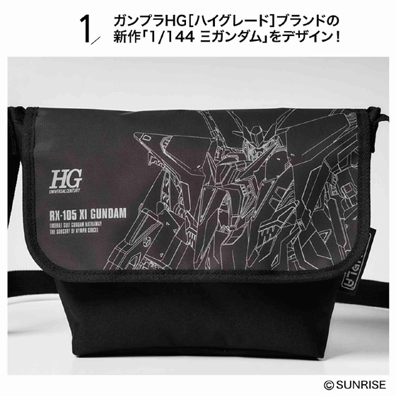 フラップ部分に独創的なフォルムのΞガンダムをプリントした、迫力満点のメッセンジャーバッグが完成しました。