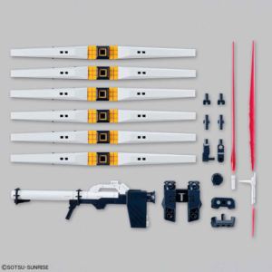 「νガンダム」の特殊装備、フィン・ファンネル単体が「オプションパーツセット」として発売となります。セットにはファンネルの他、ニュー・ハイパー・バズーカや、メインと左腕のサブ用のエフェクトパーツを取り付けられるビーム・サーベル2本も付属しています。
