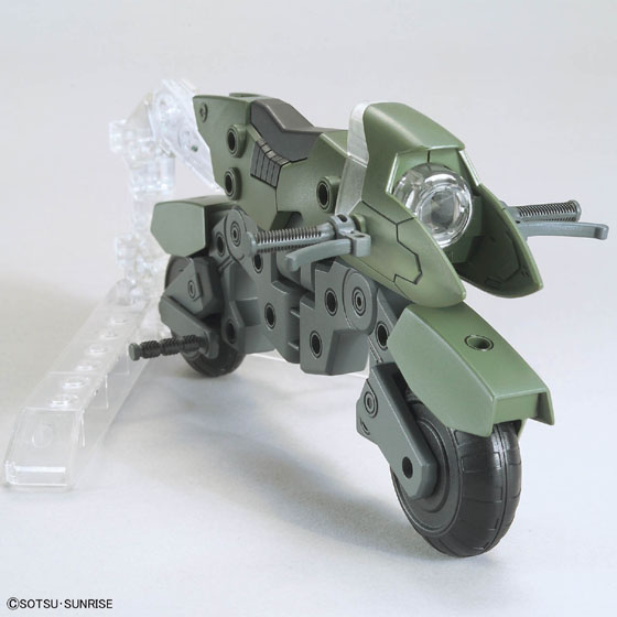 「マシンライダー」は、タイヤも小さく小型サイズですので、ミニバイクといったところですね。(商品画像にある「ダイバーナミ」がまたがった姿は子供が乗るポケバイのようですが…💧)宇宙世紀でいう「F91」以降の機体や『Gガンダム』・『ガンダムW』といったアナザーガンダムに登場した、ひと回り小さな機体に合わせたいメカです。