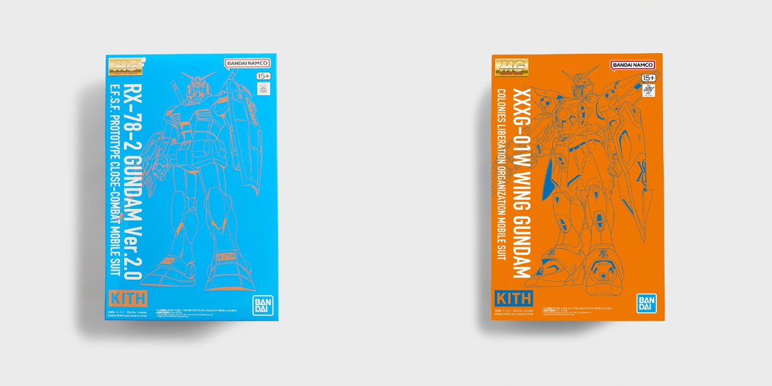 ・ラインナップは「MG 1/100 RX-78-2 ガンダム Ver.2.0」・「MG 1/100 ウイングガンダム」を採用。どちらもコレクタブル仕様のKith for GUNPLAボックスに収められており、ビーム・ライフル、ビーム・サーベル、シールドなどのアクセサリーに加え、カスタマイズ用のKith for Tetoronステッカーが付属。