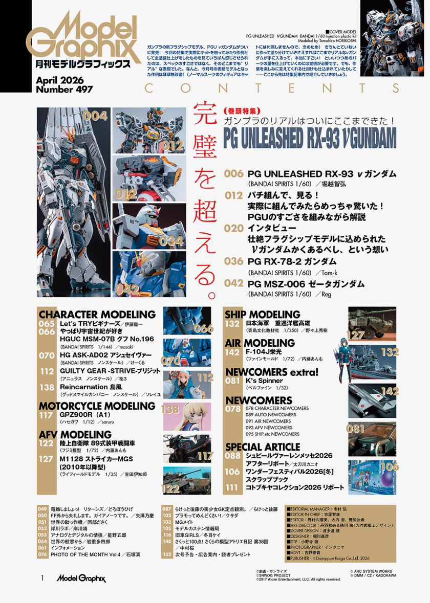 - 【発売】[巻頭特集]ガンプラのリアルはついにここまできた!PG UNLEASHED RX-93 νガンダム「月刊モデルグラフィックス 2026年4月号」、2026年2月25日(水)発売!