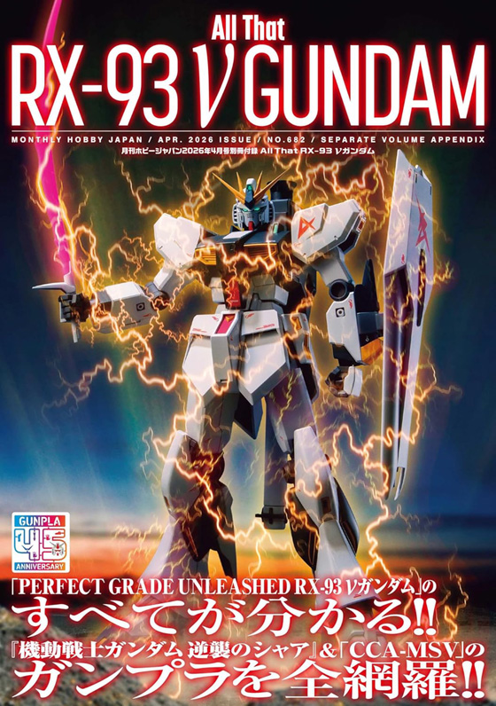 - 【発売】巻頭特集:ガンプラ45年の集大成PERFECT GRADE UNLEASHED RX-93 νガンダム「月刊ホビージャパン 2026年4月号」、2026年2月25日(水)発売!