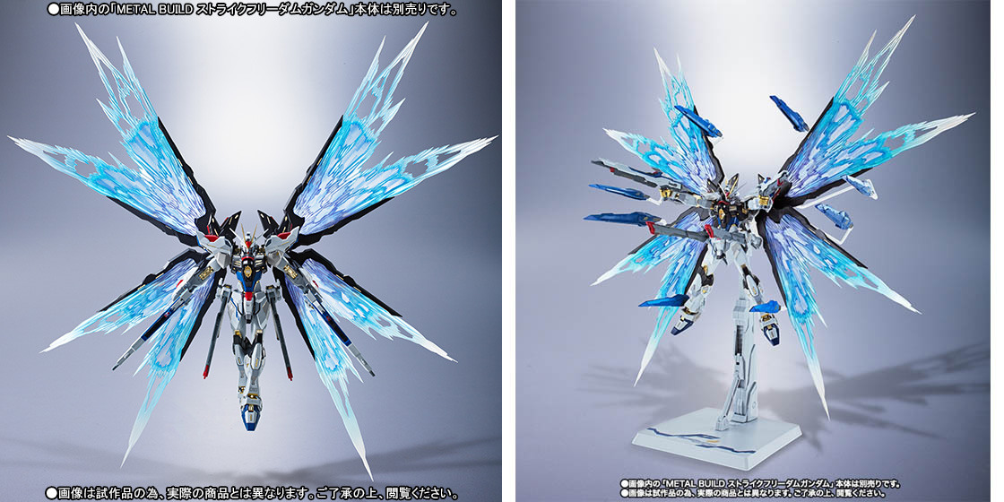 光の翼やドラグーン展開状態を再現可能な「METAL BUILD 光の翼オプションセット」(下画像➁)は、おそらくプレバン(魂ウェブ商店)にて近日、予約が開始されるのではないでしょうか?この商品は「TAMASHII NATIONS STORE TOKYO」でも販売されるということですが、販売方法は後日公開予定となっております。