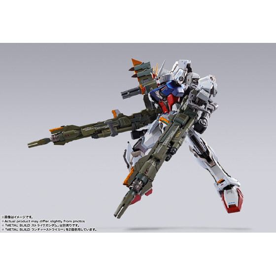 メイン武装「アグニ」は、砲身展開ギミックにより砲撃時をイメージした迫力のボリュームに拡大。肩のコンボウェポンポッドには、クルーズミサイルやビームサーベルを搭載。シールド部を再構成して腕部に装備する事もでき、多彩な武装形態を展開できる。別売りの「ソードストライカー」「エールストライカー」の懸架に対応したスタンドパーツで「ストライクガンダム」とのディスプレイが可能。また2本のランチャーを装備した形態など様々なバリエーションを楽しむことができる。「METAL BUILD ストライクガンダム」シリーズ(別売り)への装着は勿論、「METAL BUILD ガンダムアストレイ」シリーズ(別売り)にも装着可能。