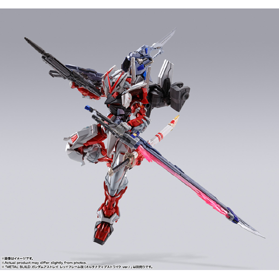 刀身展開ギミックによる長短二種類の展開状態、肩部マイダスメッサ―可動による投擲ポーズの再現等、METAL BUILD独自機構の数々が、多彩なディスプレイを可能にする。別売りの「ランチャーストライカー」「エールストライカー」の懸架に対応したスタンドパーツで「ストライクガンダム」とのディスプレイが可能。また2本のソードを装備した形態など様々なバリエーションを楽しむことができる。「METAL BUILD ストライクガンダム」シリーズ(別売り)への装着は勿論、「METAL BUILD ガンダムアストレイ」シリーズ(別売り)にも装着可能。