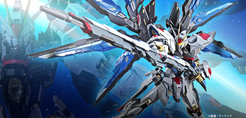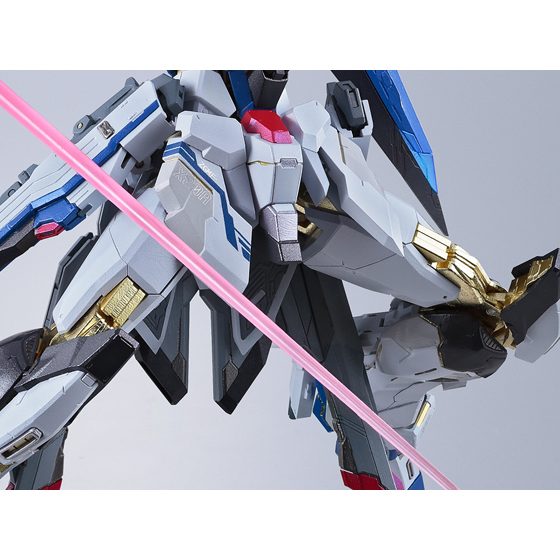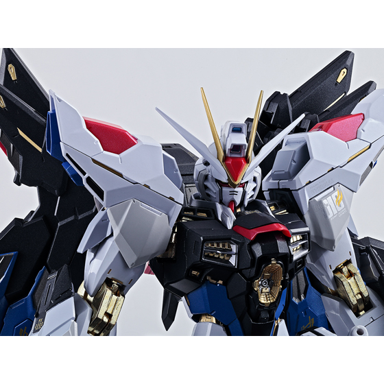 METAL BUILDストライクフリーダムガンダムが再登場!高い評価を受け続けているデザインアレンジに加え、塗装による完成品ならではの質感、電解メッキでの金色の関節が、圧倒的な存在感を演出する。
