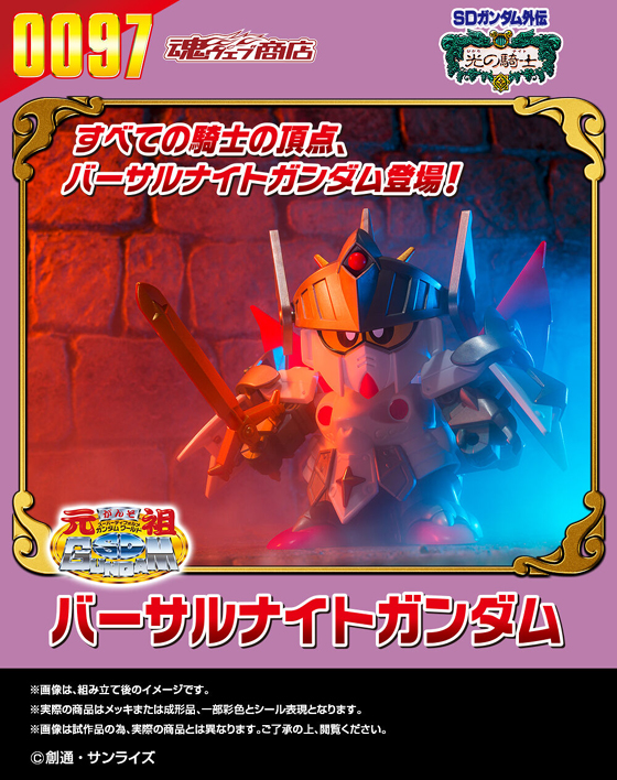 『SDガンダム外伝』より「バーサルナイトガンダム」が一部鎧の成型色変更、そして新規造形の復活元祖SDオリジナルパーツ(顔部)とともに、新たに「元祖SDガンダムワールド」に登場!